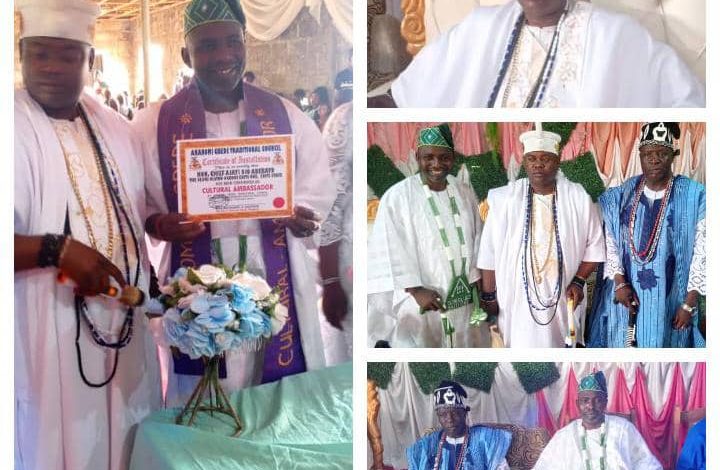 The Chairman of Kajola Local Councilor Development Area Hon. Ajayi Ojo Adebayo has been honoured as a Cultural Ambassador by the Olu of Araromi Gbede Kingdom His Royal Highness Oba Michael Eniayekan.