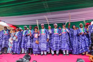 The ambience of the venue became supercharged, as Governor Oyebanji, accompanied by the leaders, arrived the venue of the programme at 12:16pm, and was received amid cheers and wild jubilation by party supporters and other admirers, who adorned in different Ankara Aso Ebi and vests, carrying the logo of APC and the governor’s portraits.