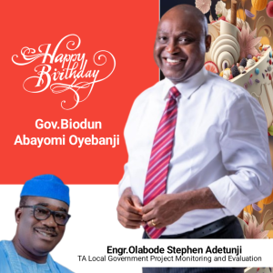 Engr. Olabode Adetunji, the Technical Advisor for Local Government Project Monitoring and Evaluation, has extended warm felicitations to Ekiti State Governor, Mr. Biodun Abayomi Oyebanji, on the occasion of his birthday. Adetunji, in a special tribute, highlighted the Governor’s unprecedented focus on grassroots development, which has transformed the local government landscape. He stated that the Governor’s visionary leadership has turned the local governments into active hubs of tangible development, moving beyond mere administrative units to engines of direct impact for the rural populace.