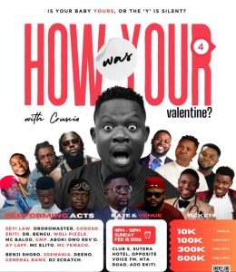 It was meant to be a night of rib-cracking laughter at Cruscio’s “How Was Your Valentine” show version 4 in Ado Ekiti on Sunday, but ace comedian Seyi Law turned the volume up with a serious political declaration that brought the house down.